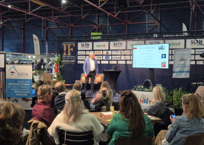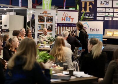 Voor veel ondernemers in de hippische sector, van instructeurs en stalhouders tot leveranciers en dienstverleners, is het een uitdaging om aansluiting te vinden bij collega’s en actuele kennis. Daarom kiest het HNT er bewust voor om niet zomaar gebruik te maken van de beursvloer, maar een echte netwerkvloer te creëren waar ondernemers elkaar ontmoetten, ervaringen deelden en betekenisvolle verbindingen aangingen. Het thema “Paard & Bedrijf” legde de nadruk op de combinatie van vakmanschap met paarden én het goed organiseren van je onderneming. De boodschap was duidelijk: ondernemen in de paardensector is topsport.