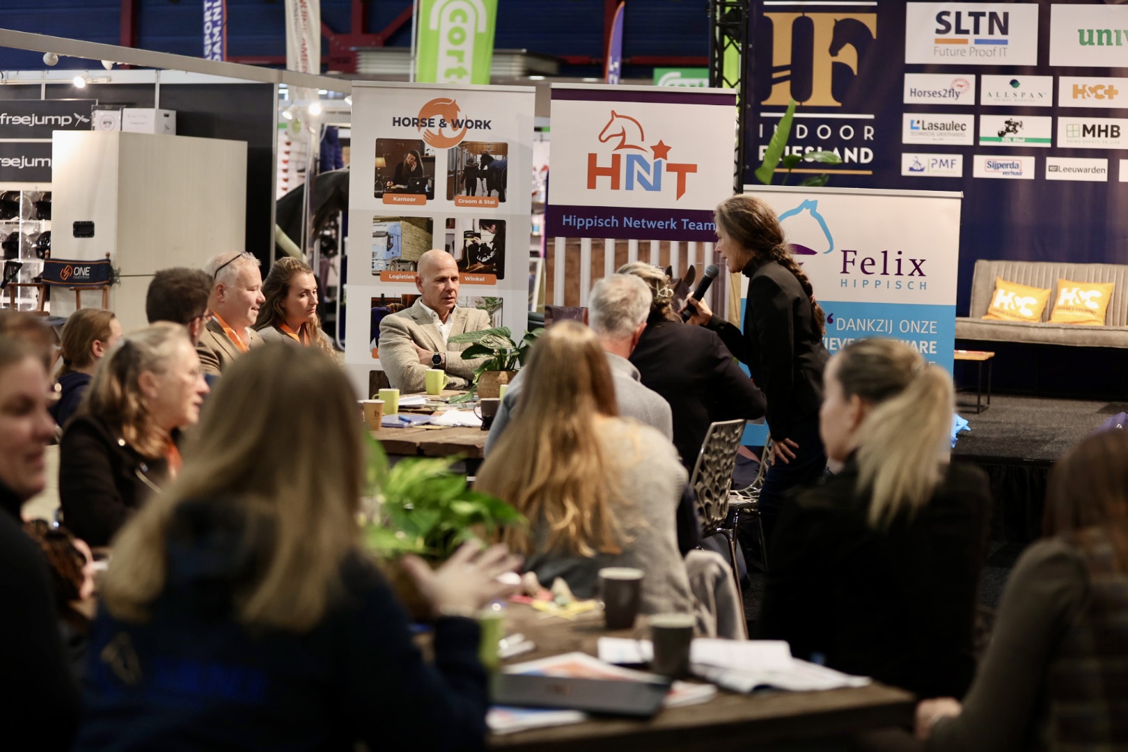 De middag startte in het sfeervolle strodorp van de WTC Expo, waar deelnemers onder het genot van koffie en thee de eerste verbindingen legden. Vervolgens gingen zij in korte tafelsessies met elkaar in gesprek, stelden zichzelf en hun bedrijf voor en wisselden ervaringen uit. Kernboodschap blijkt dat er werk te doen is op het gebied van professionalisering binnen de hippische sector. Er ligt nog veel winst te behalen in het structureren van bedrijfsvoering, personeel, marketing en financiële processen. Tegelijkertijd werd één van de belangrijkste conclusies dat samenwerking tussen bedrijven enorme mogelijkheden biedt: door kennis en middelen te delen, elkaar te versterken en gezamenlijke initiatieven op te zetten, kan de sector als geheel verder groeien.